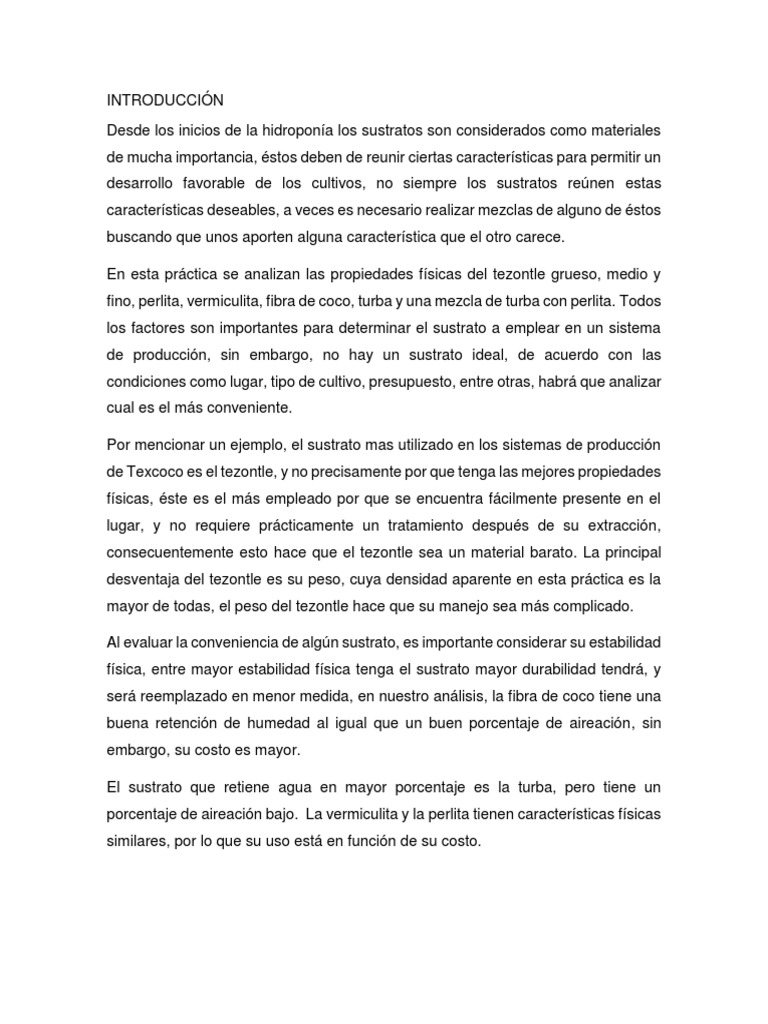 mencionado se considera que los sustratos utilizados en hidroponía proporcionan
