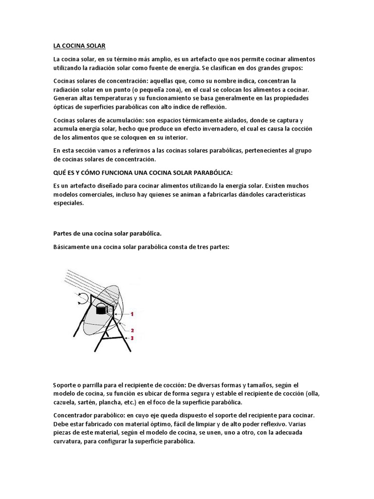 La cocina solar, en su término más amplio, es un artefacto que nos permite cocinar alimentos