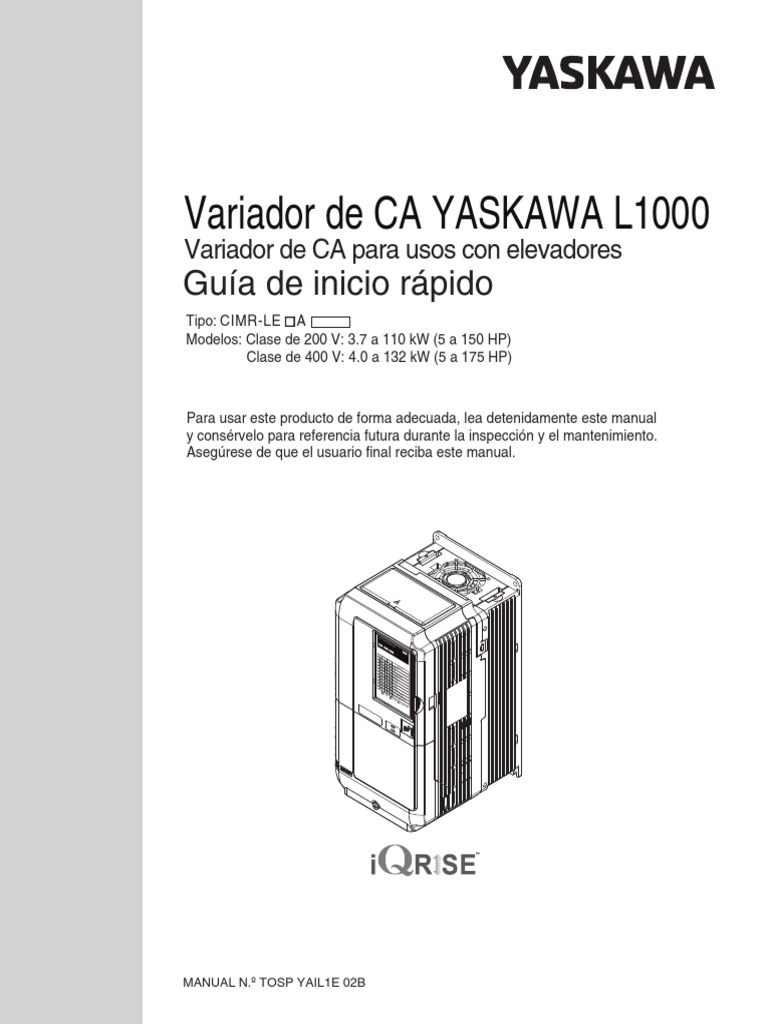 4 YASKAWA Variador de CA YASKAWA TOSP YAIL1E 02B - Guía de inicio rápido L1000E