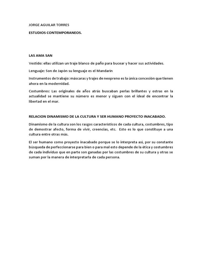 RELACION DINAMISMO DE LA CULTURA Y SER HUMANO PROYECTO INACABADO.