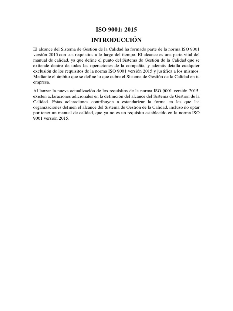 El alcance del Sistema de Gestión de la Calidad ha formado parte de la norma ISO 9001