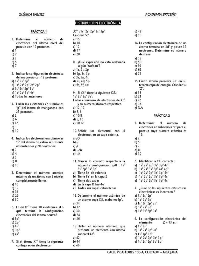 PRÁCTICA 1 zX+3 : 1s2 2s2 2p6 3s2 3p3 d) 48