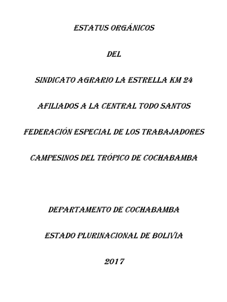 Estatutos organicos del sindicato agrario la estrella km 24 de la central d todo santos de la