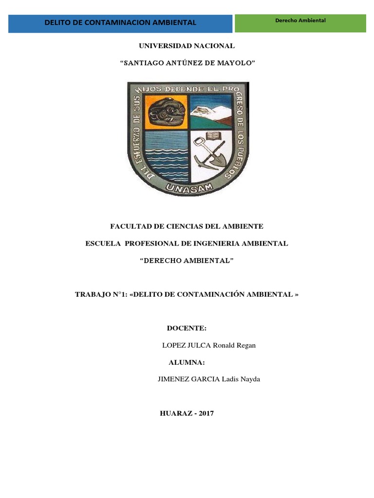 TRABAJO N°1: «DELITO DE CONTAMINACIÓN AMBIENTAL »