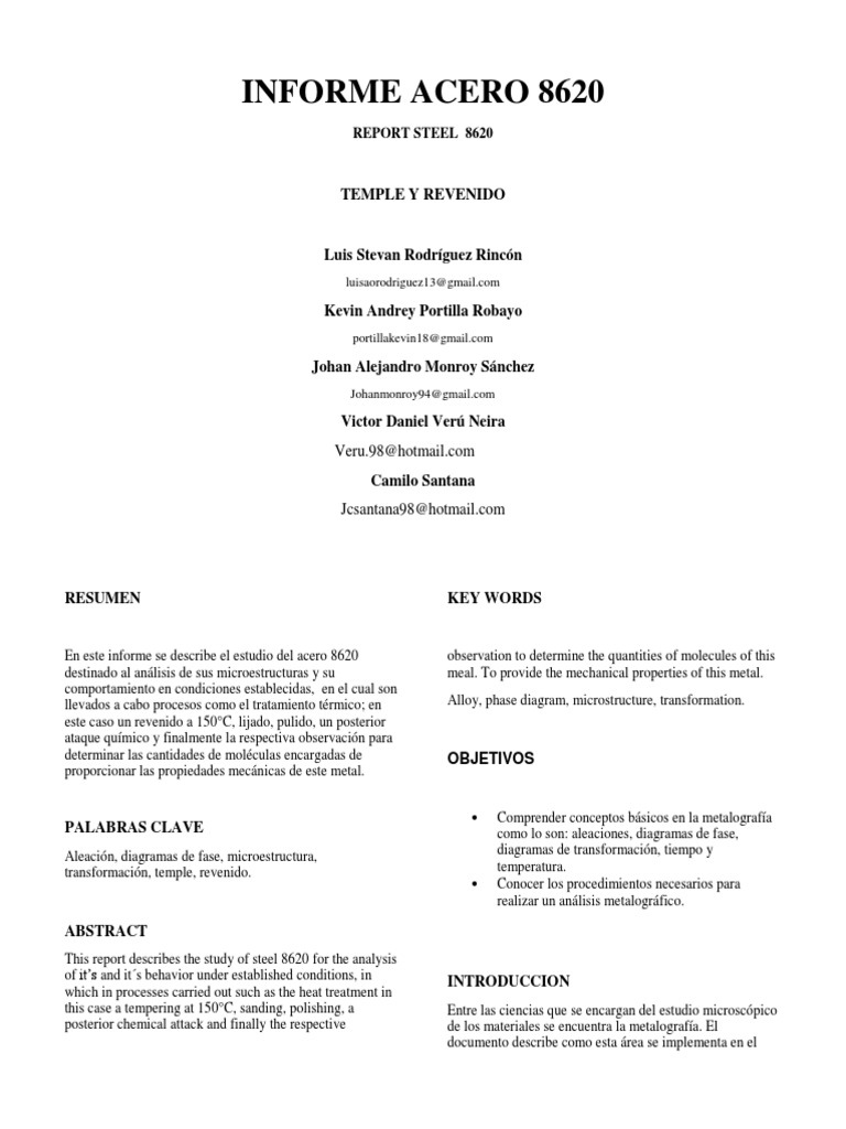 En este informe se describe el estudio del acero 8620 observation to determine the quantities of molecules of this