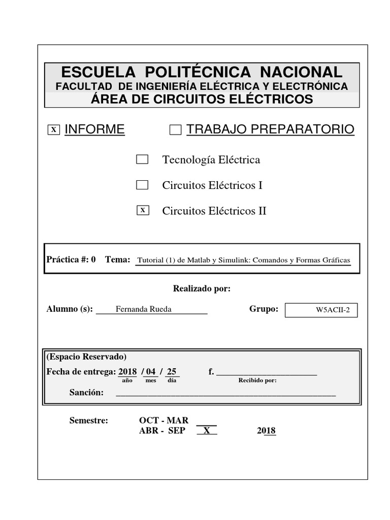 Práctica #: 0 Tema: Tutorial (1) de Matlab y Simulink: Comandos y Formas Gráficas