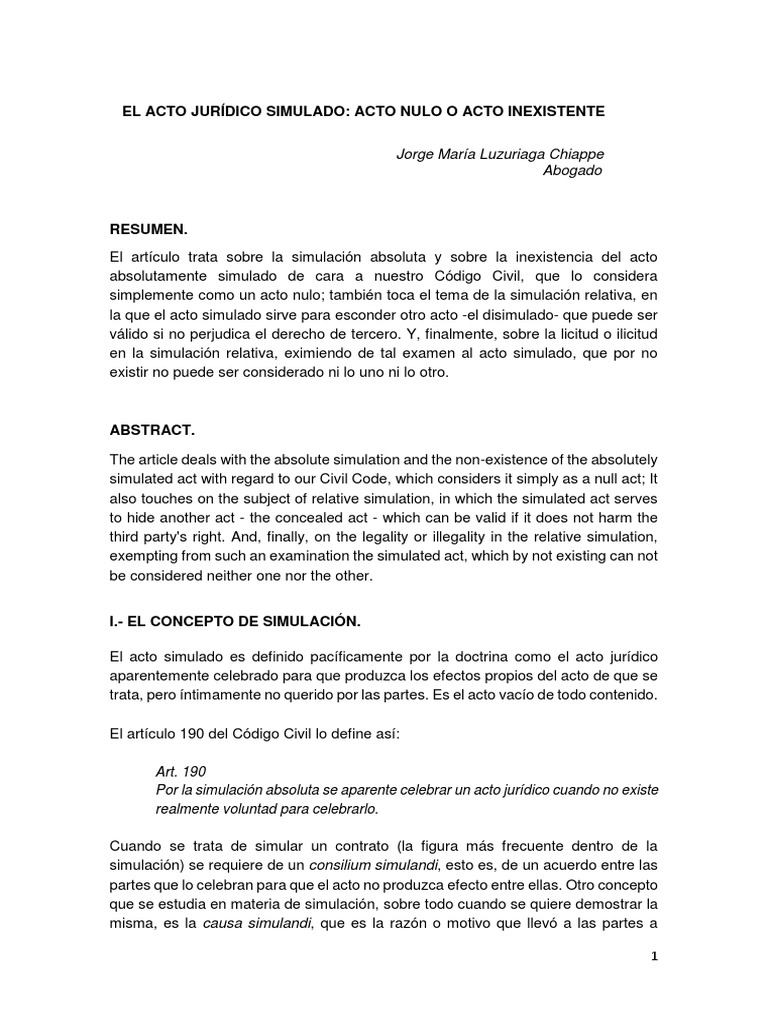 simplemente como un acto nulo; también toca el tema de la simulación relativa, en