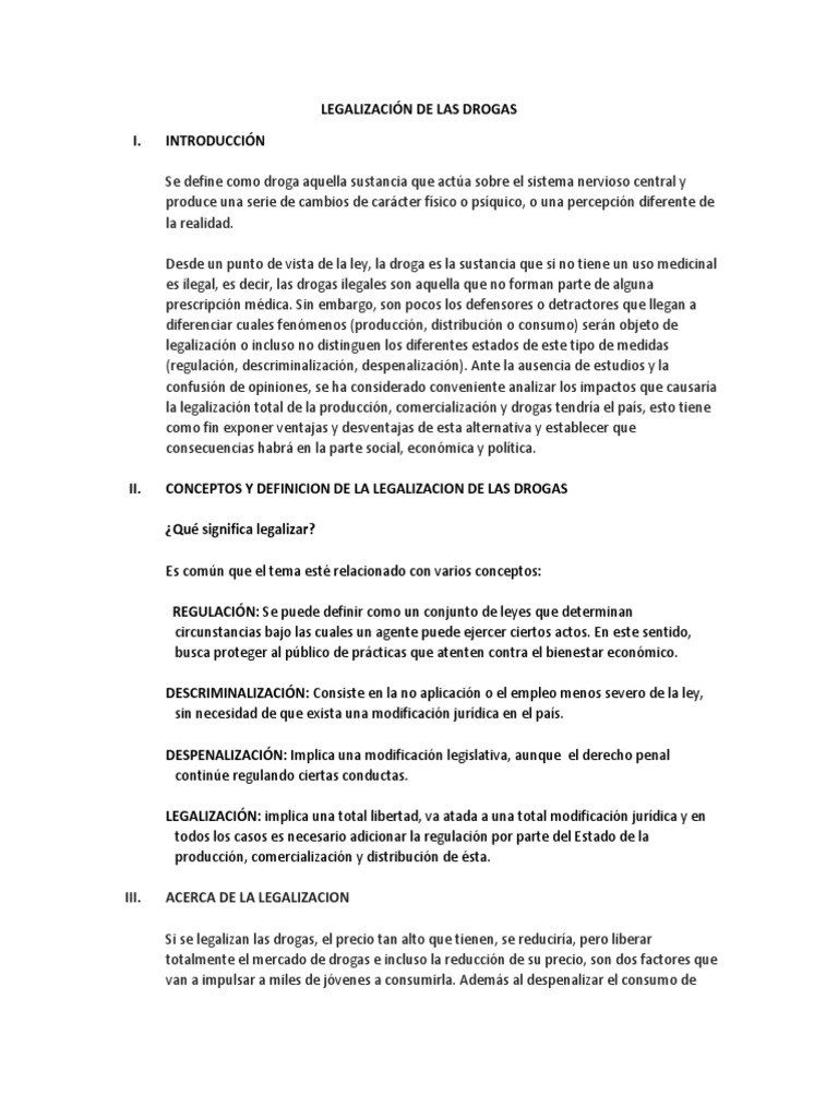 determinar si se legaliza la producción, comercialización y consumo de drogas, cuál sería