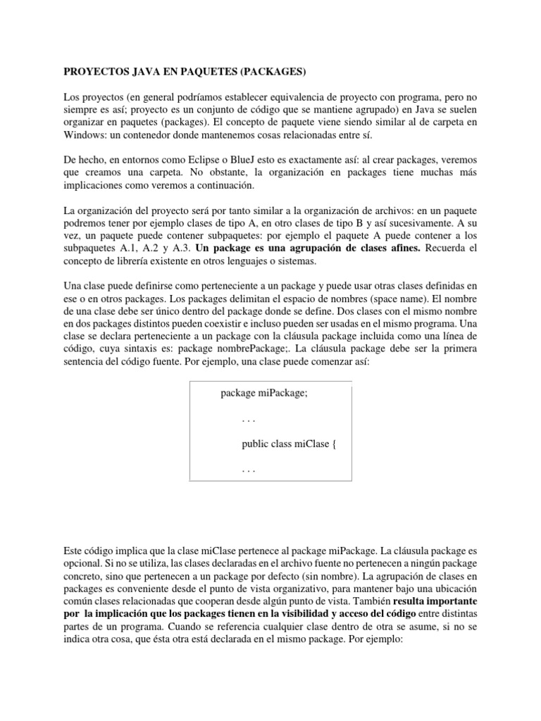 ordenador. Supongamos que definimos una clase de nombre miClase que pertenece a un package