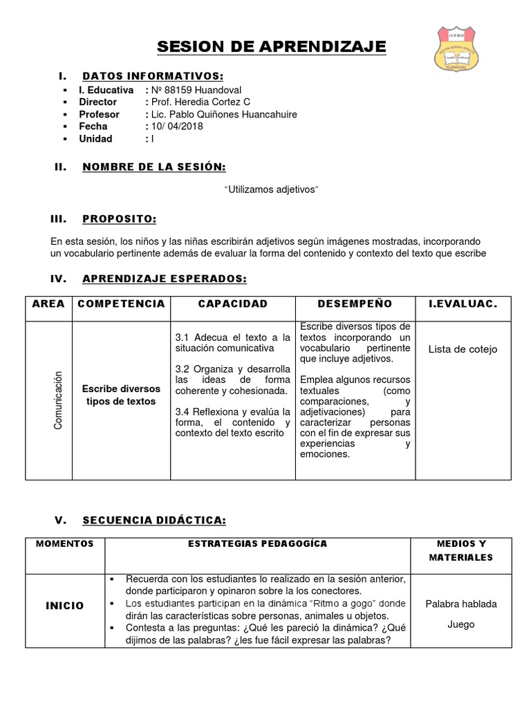 situación comunicativa vocabulario pertinente Lista de cotejo