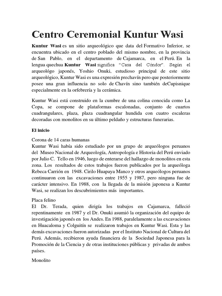 arqueológico, Kuntur Wasi es una expresión prechavín pero que posteriormente