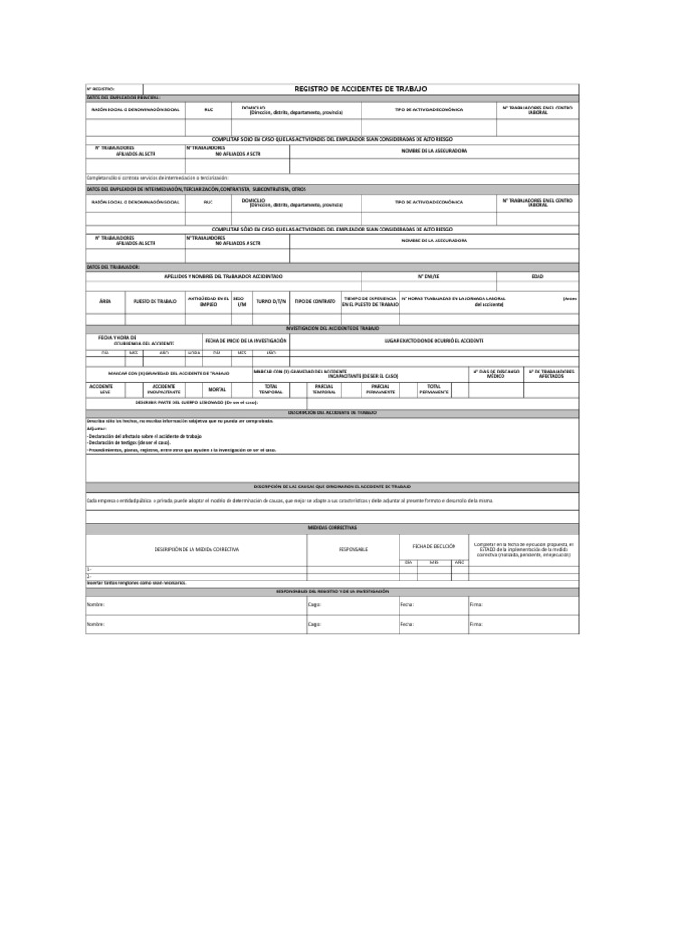 N° REGISTRO: REGISTRO DE ACCIDENTES DE TRABAJO