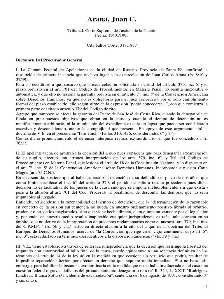 Landívar, Blanca Sofia s/ incidente de excarcelación", sentencia del 6 de agosto de 1991, considerando 3°