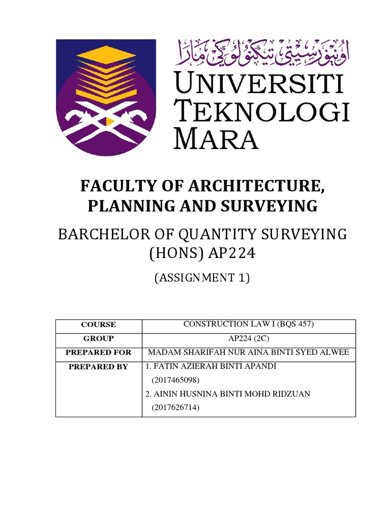 COURSE CONSTRUCTION LAW I (BQS 457)