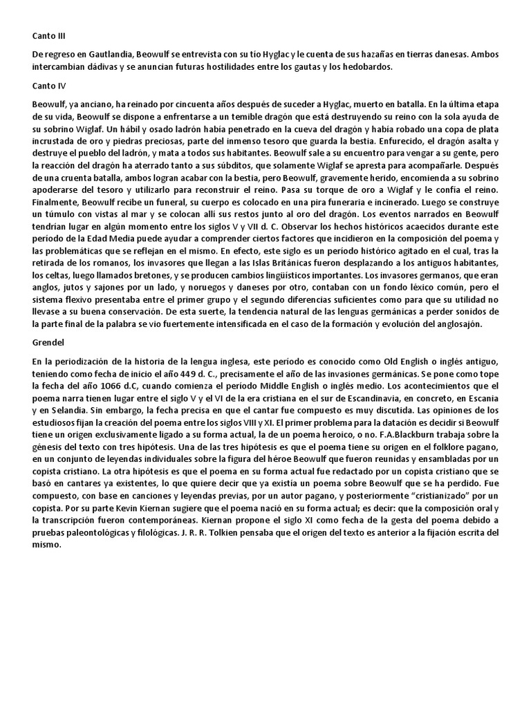 estudiosos fijan la creación del poema entre los siglos VIII y XI. El primer problema para la datación es decidir si Beowulf