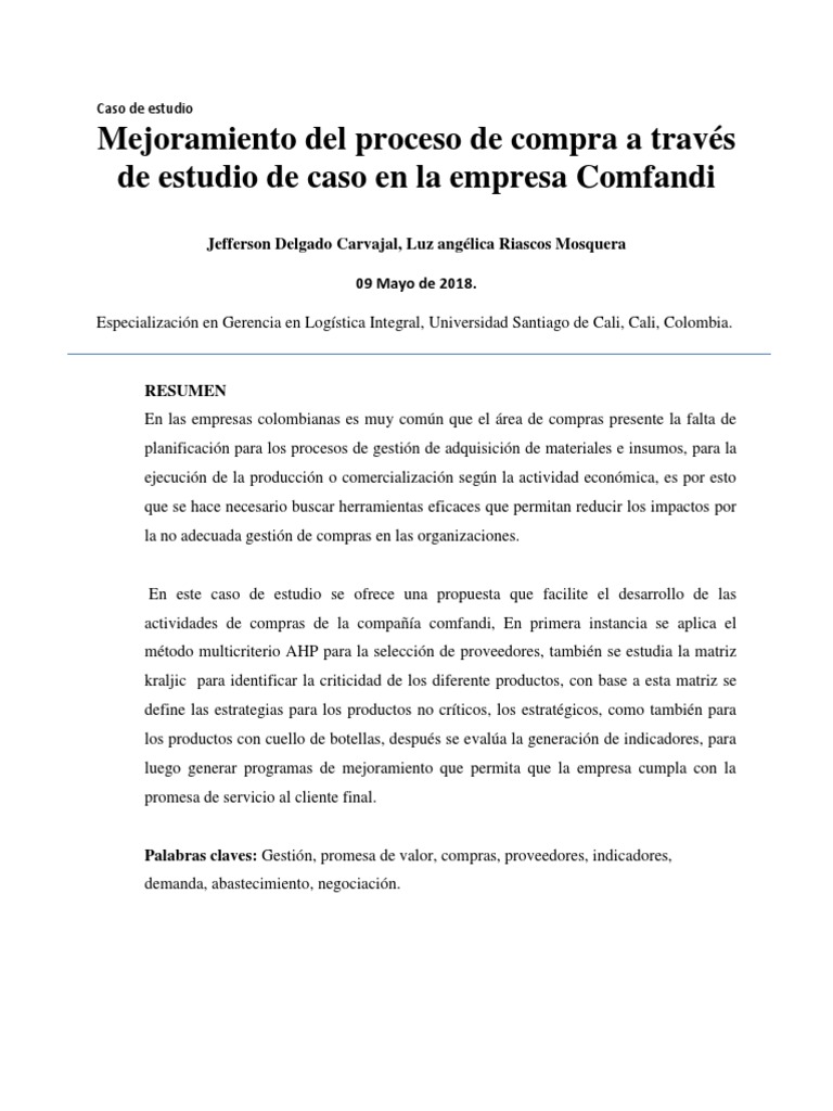 de estudio de caso en la empresa Comfandi