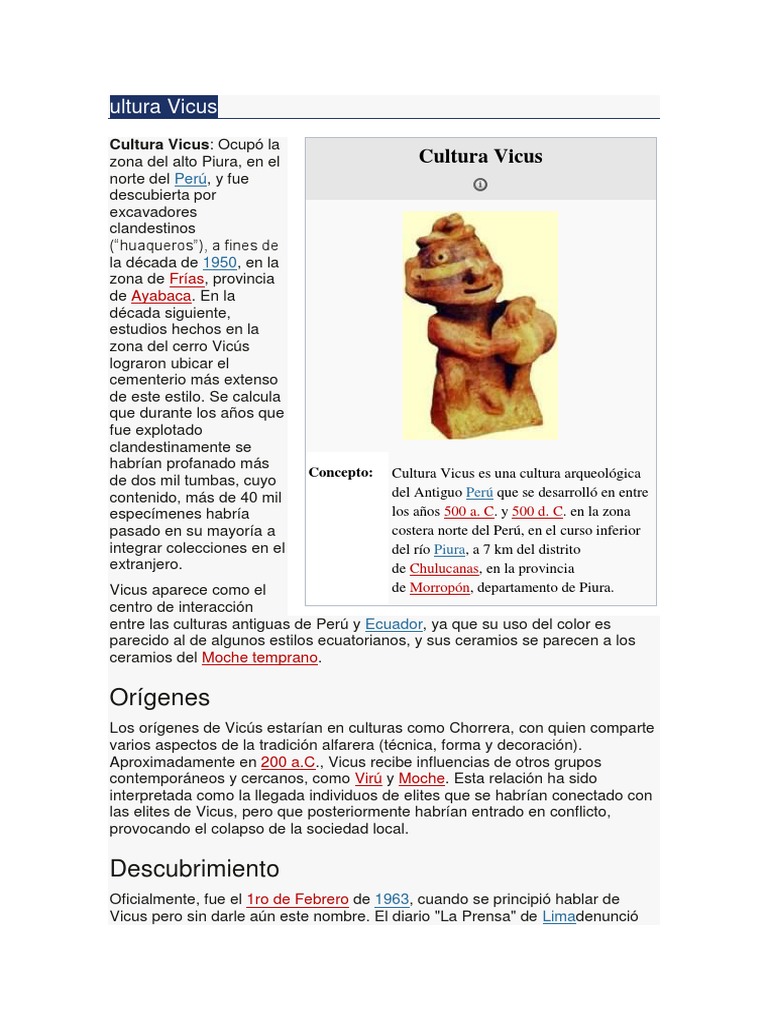 de cerámica. Vicus era comprensión de la entonces extensa Hacienda Pabur,