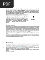 de lo que antecede y que en el habla es una pausa precedida de un descenso en el tono. Dicha pausa