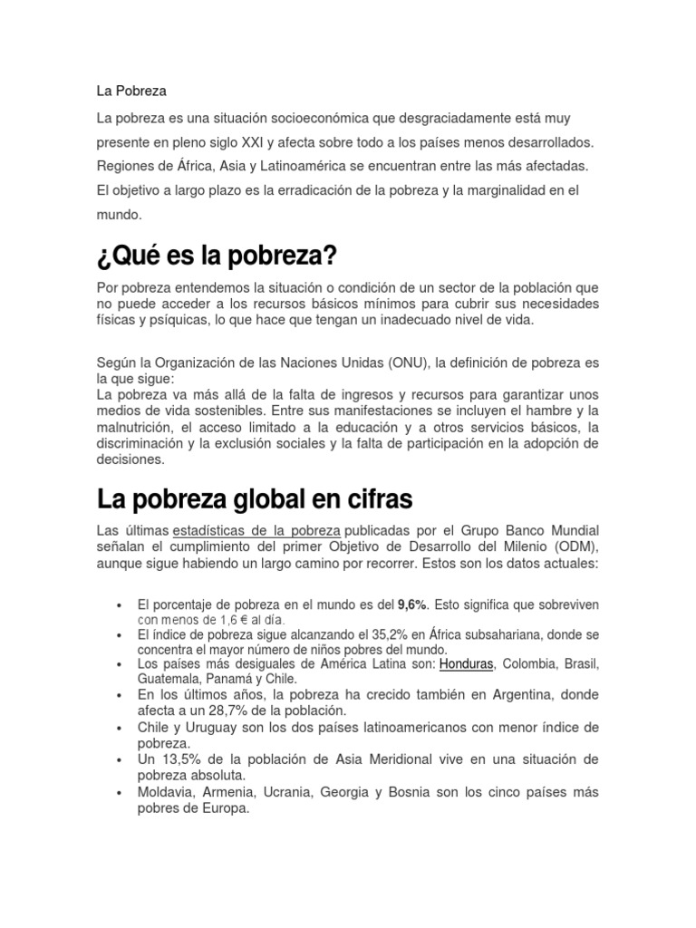 La pobreza es una situación socioeconómica que desgraciadamente está muy