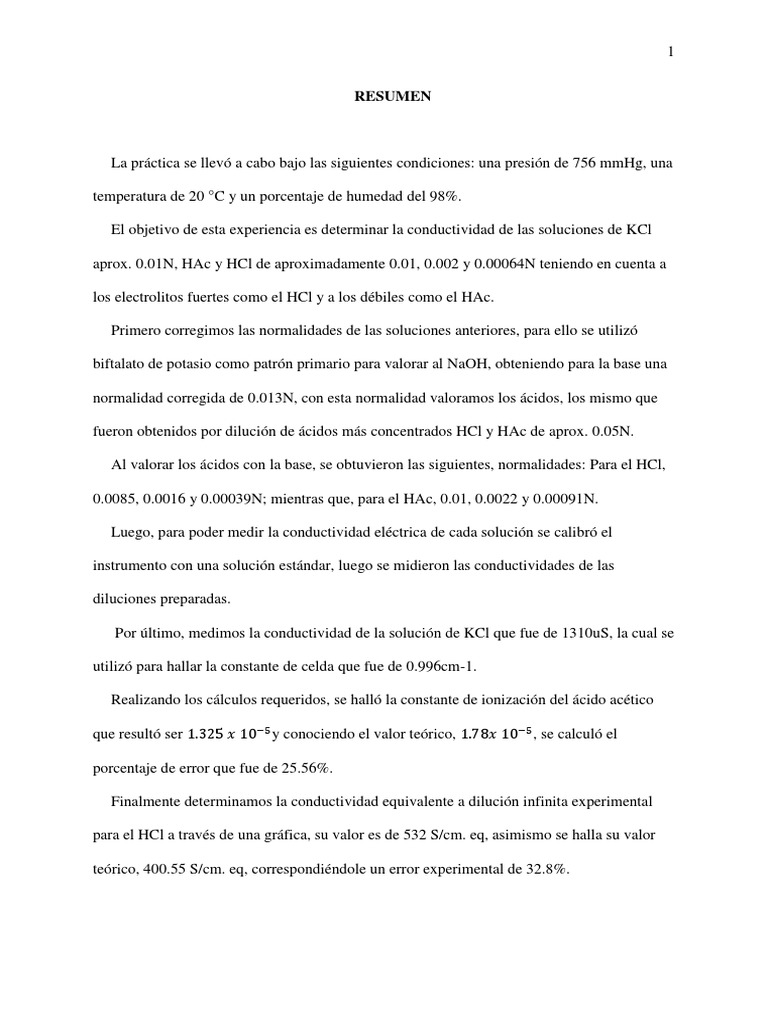 El objetivo de esta experiencia es determinar la conductividad de las soluciones de KCl