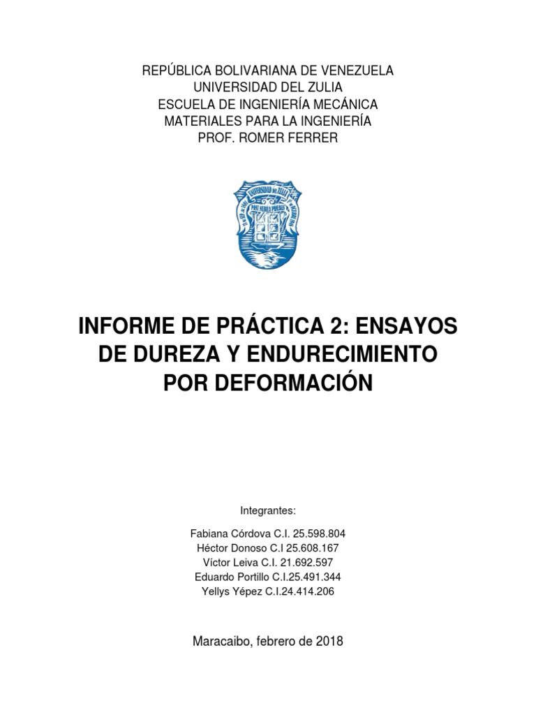 El siguiente informe comprende las prácticas de ensayos de dureza y