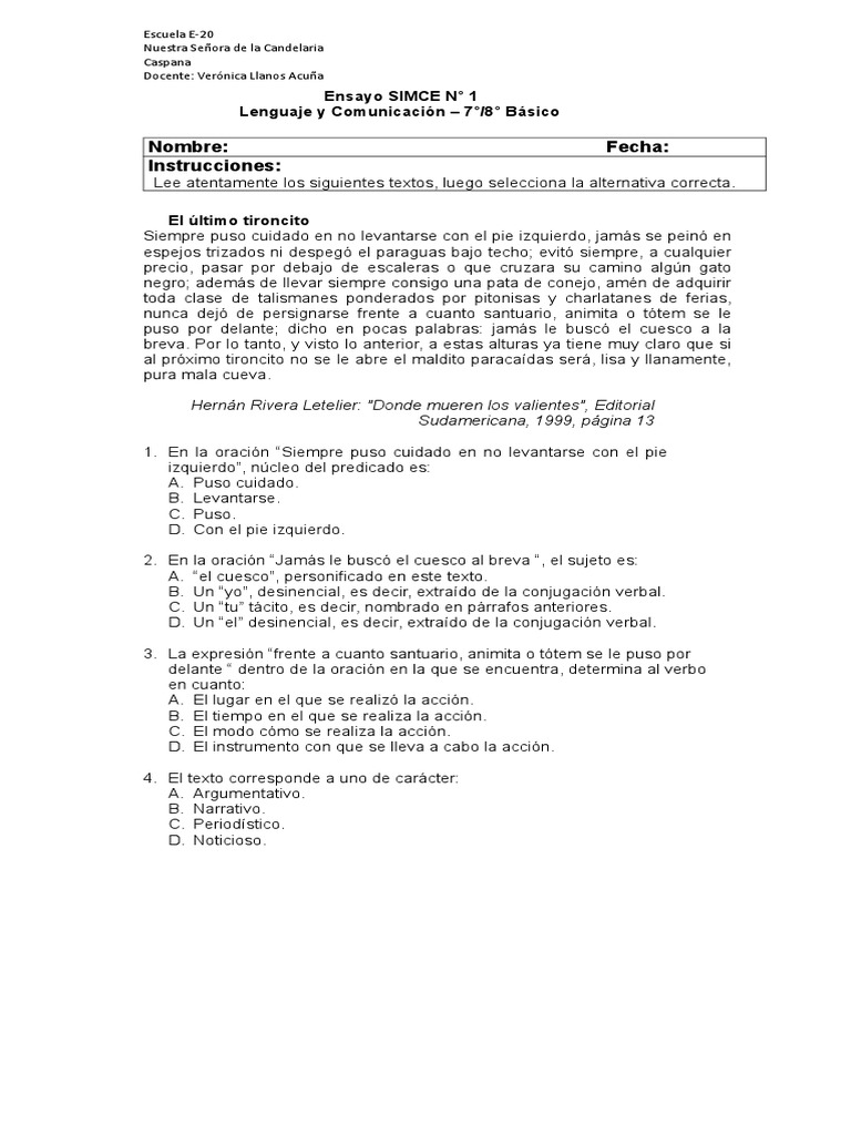 Ensayo SIMCE N° 1