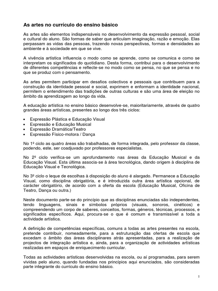 As competências artísticas que o aluno deve desenvolver ao longo do ensino básico,