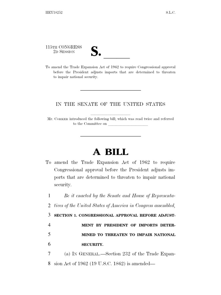 To amend the Trade Expansion Act of 1962 to require Congressional approval before the President adjusts im-ports that are determined to threaten to impair national security.