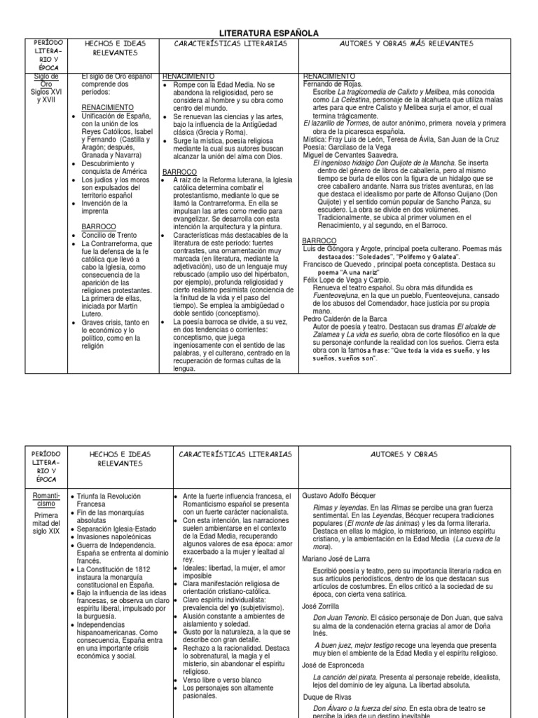 PERÍODO HECHOS E CARACTERÍSTICAS LITERARIAS AUTORES Y OBRAS MÁS RELEVANTES