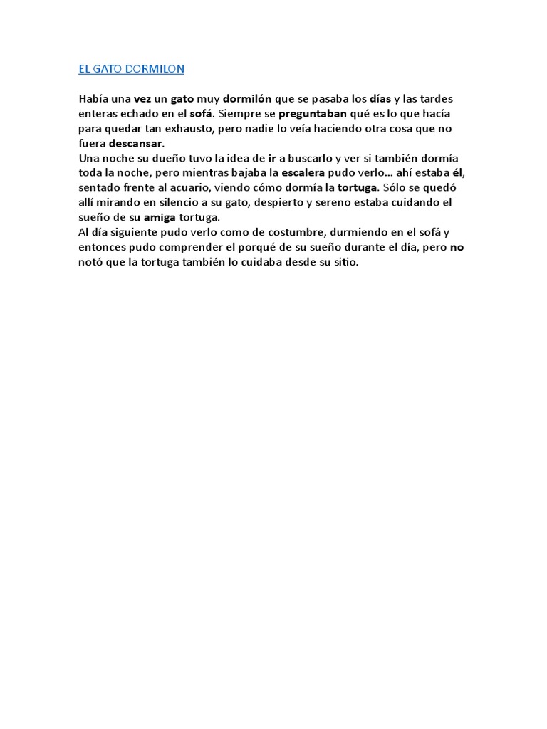 Había una vez un gato muy dormilón que se pasaba los días y las tardes