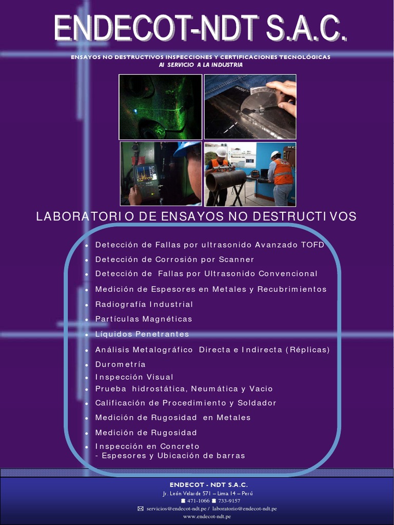 servicios@endecot-ndt.pe / laboratorio@endecot-ndt.pe