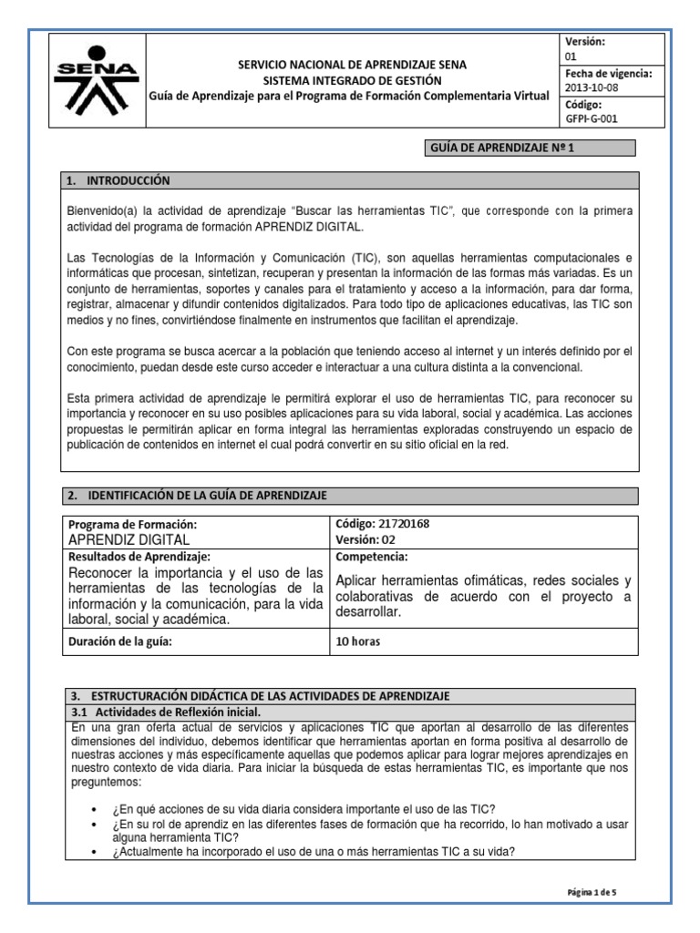 encuentra entre los Materiales del Programa de la Actividad de Aprendizaje 1 – Buscar las herramientas TIC.