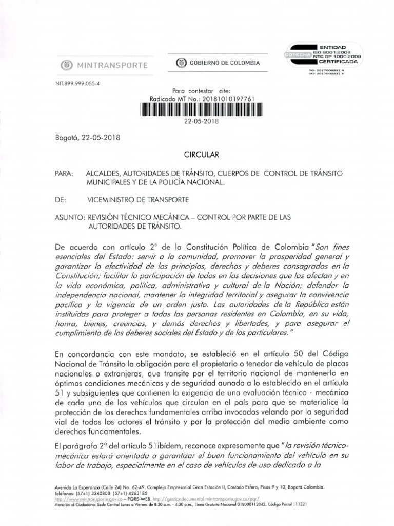 ASUNTO: REVISIÓN TÉCNICO MECÁNICA — CONTROL POR PARTE DE LAS