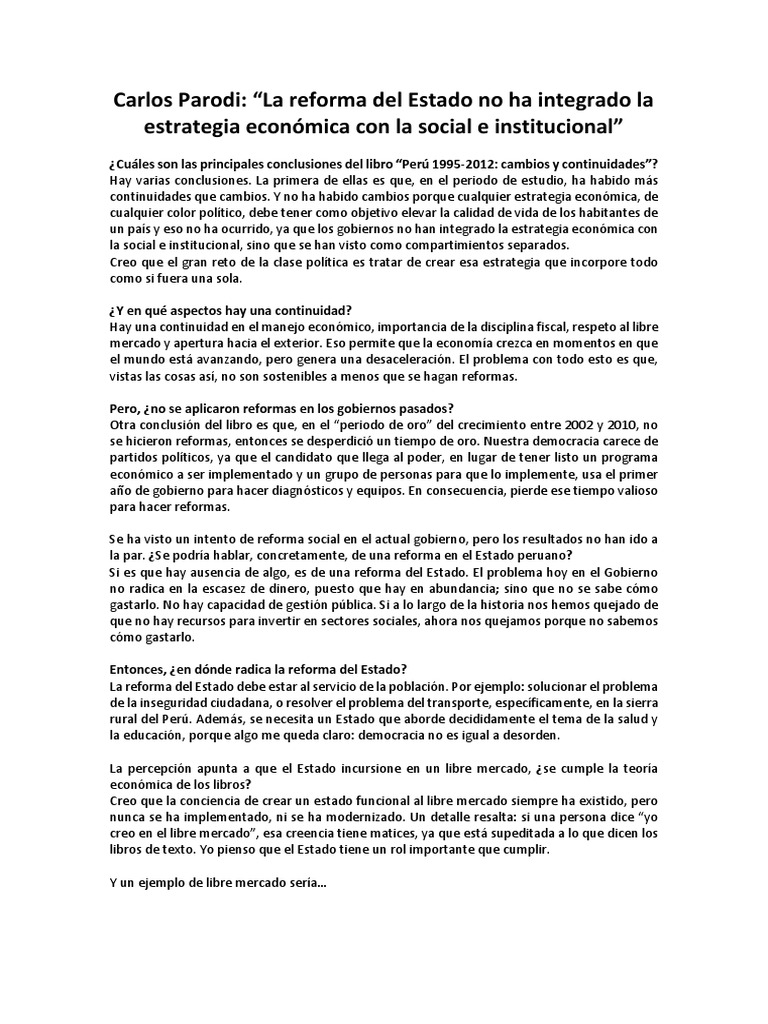 Carlos Parodi: “La reforma del Estado no ha integrado la