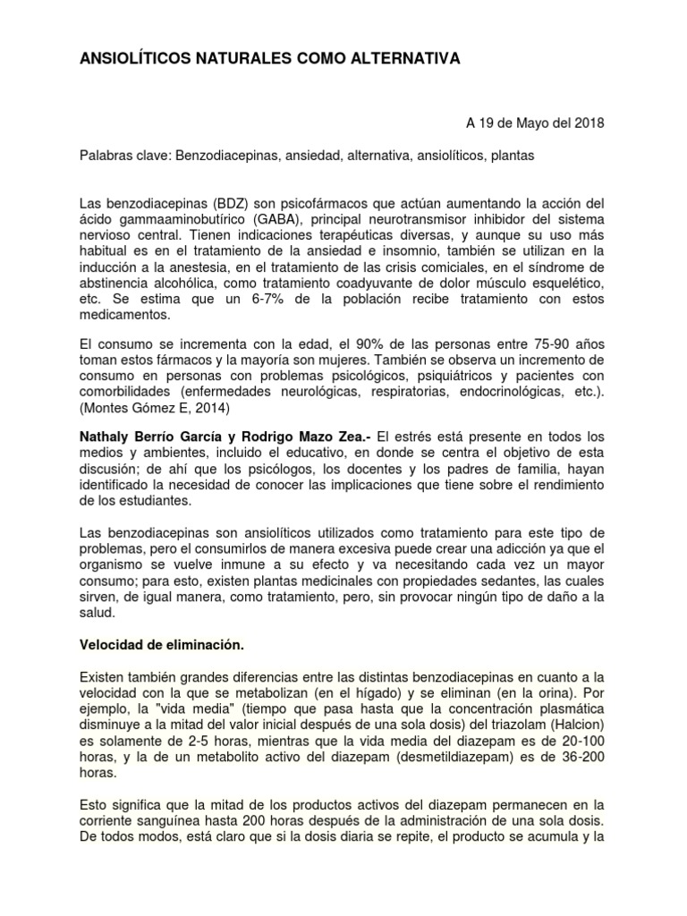 Palabras clave: Benzodiacepinas, ansiedad, alternativa, ansiolíticos, plantas