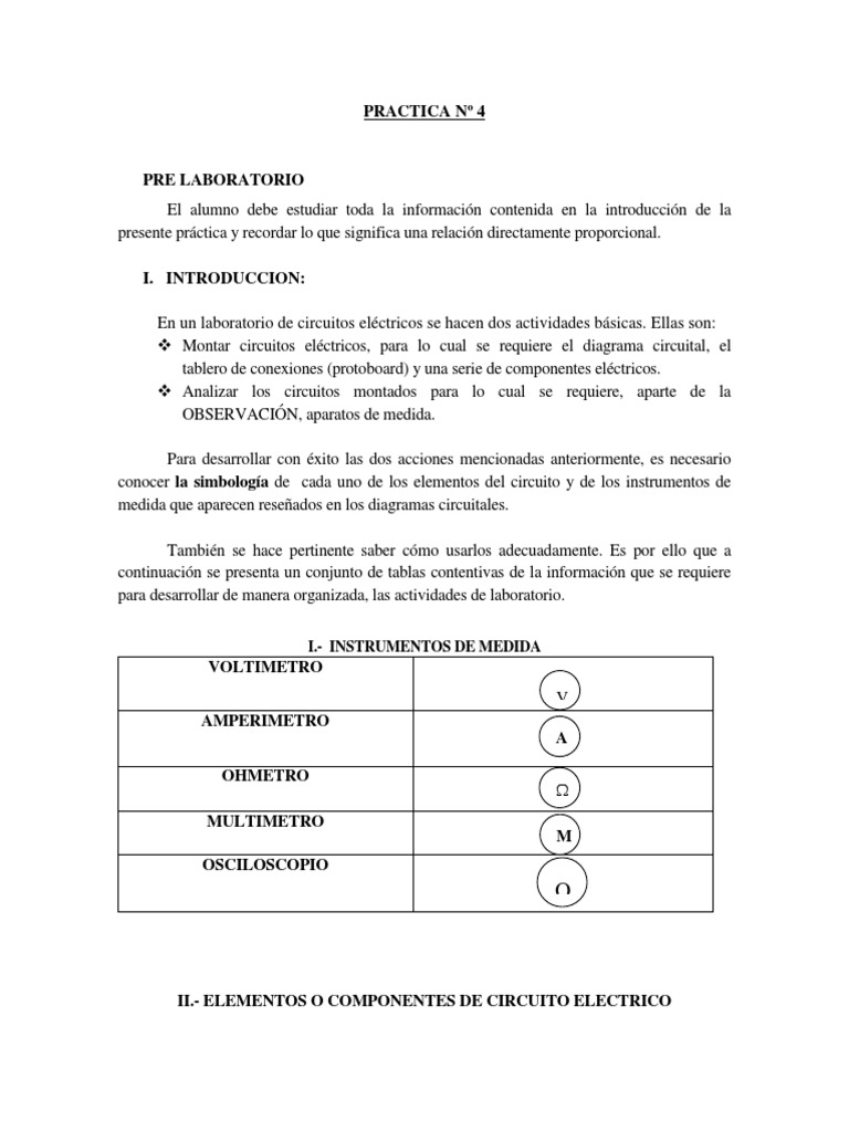 II.- ELEMENTOS O COMPONENTES DE CIRCUITO ELECTRICO
