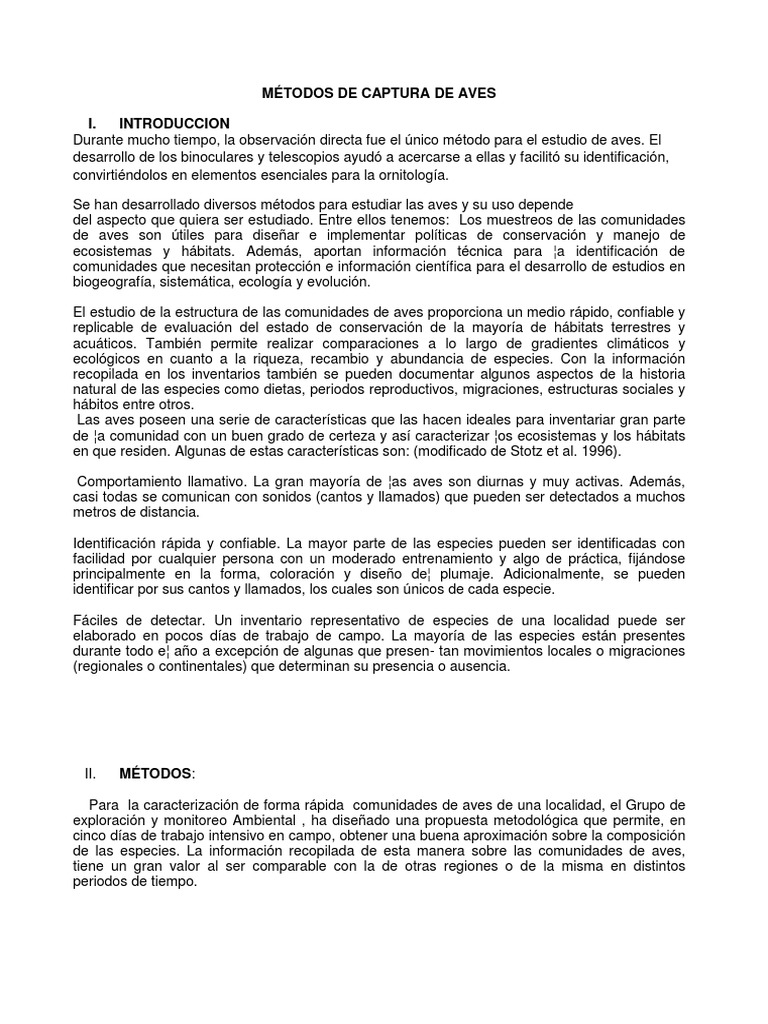 trabajo intensivo (DeSante y Geupel 1987, Ricklefs y Bloom 1977), aunque la mayoría de