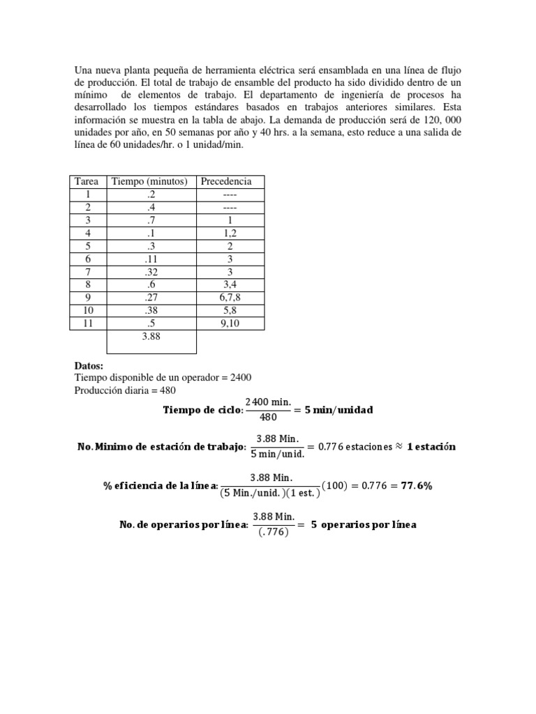 a) Balancee esta operación, agrupando en estaciones de trabajo en la forma más