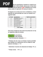 operaciones se enfrenta a la tarea de balancear la línea y hace una lista de precedencias y