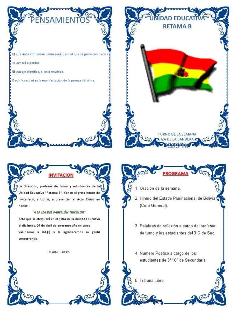invitarle(s), a Ud.(s), a presenciar el Acto Cívico en 2. Himno del Estado Plurinacional de Bolivia