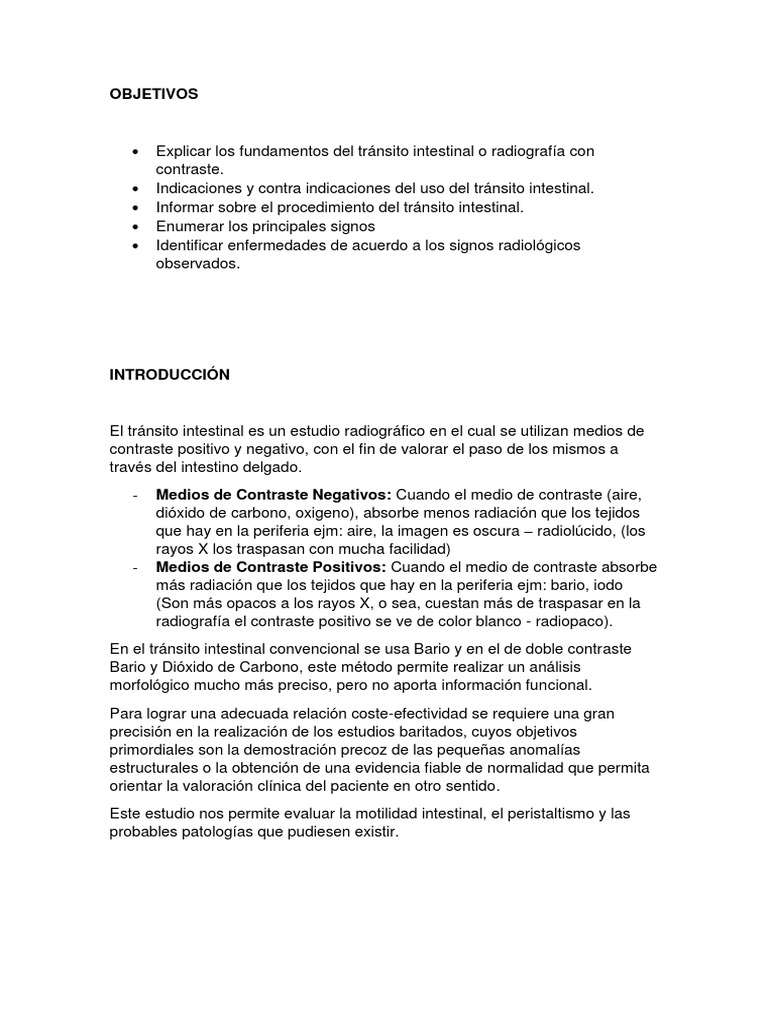 El tránsito intestinal es un estudio radiográfico en el cual se utilizan medios de