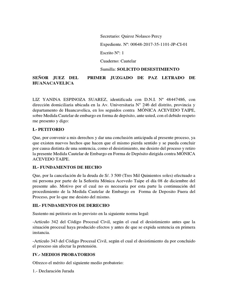 Sumilla: SOLICITO DESESTIMIENTO