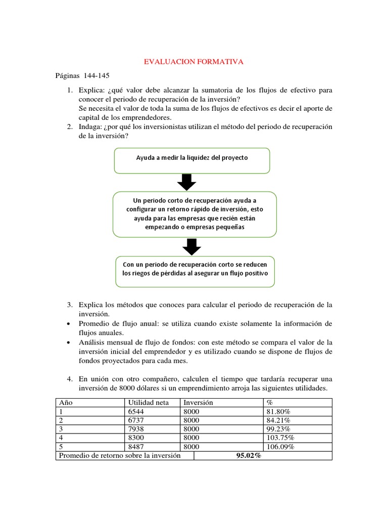 recuperar su inversión. Comparen los periodos de distintos emprendimientos y