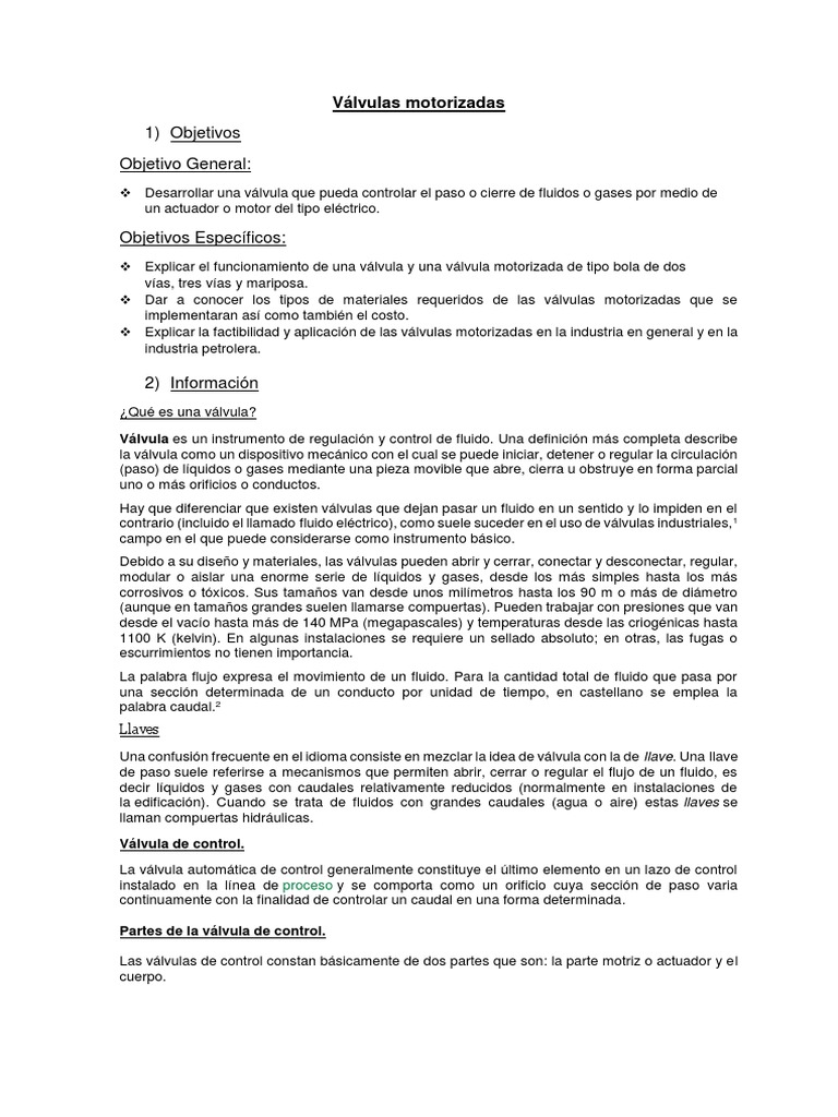 Explicar la factibilidad y aplicación de las válvulas motorizadas en la industria en general y en la