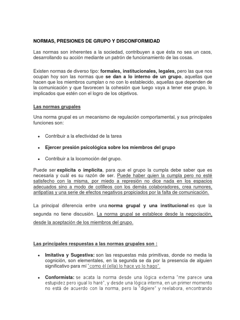 ocupan hoy son las normas que se dan a lo interno de un grupo, aquellas que