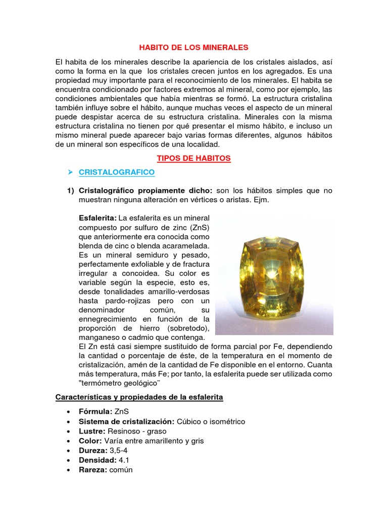propiedad muy importante para el reconocimiento de los minerales. El habita se