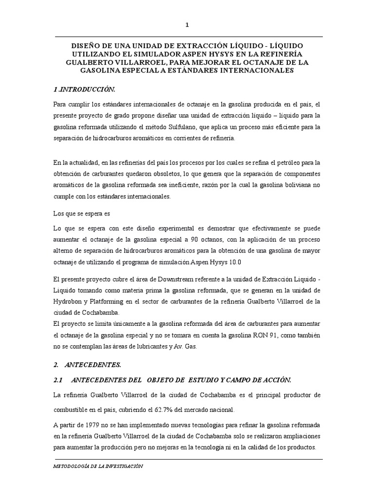 aromáticos de la gasolina reformada sea ineficiente, razón por la cual la gasolina boliviana no