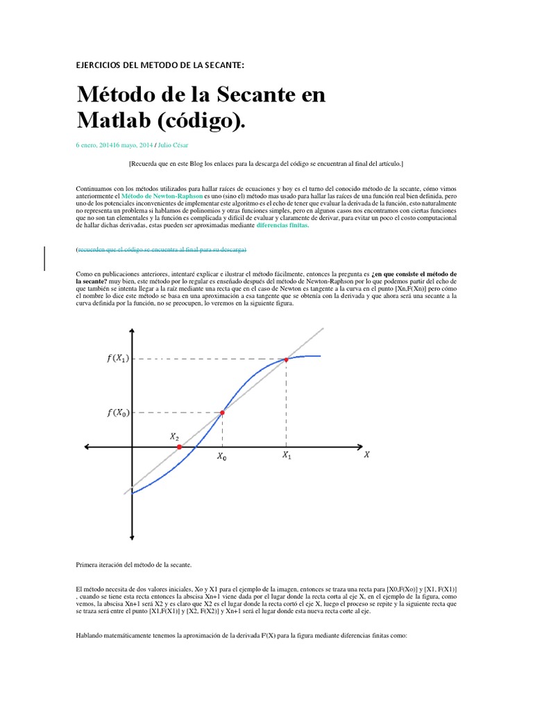 la secante? muy bien, este método por lo regular es enseñado después del método de Newton-Raphson por lo que podemos partir del echo de