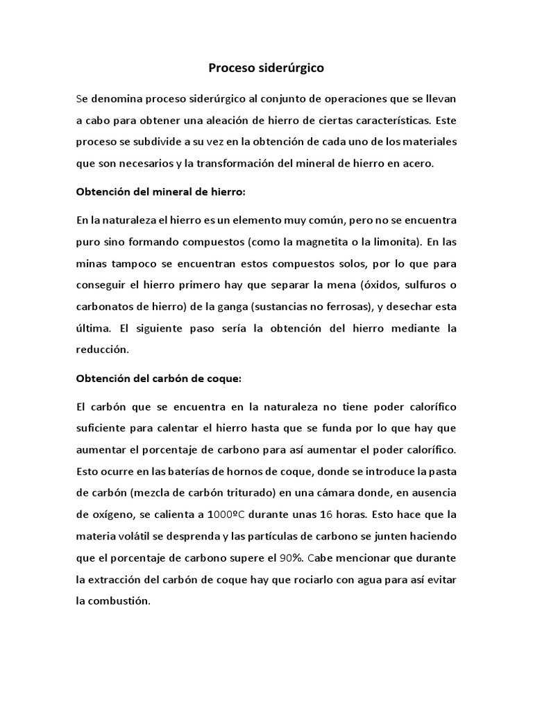 Se denomina proceso siderúrgico al conjunto de operaciones que se llevan
