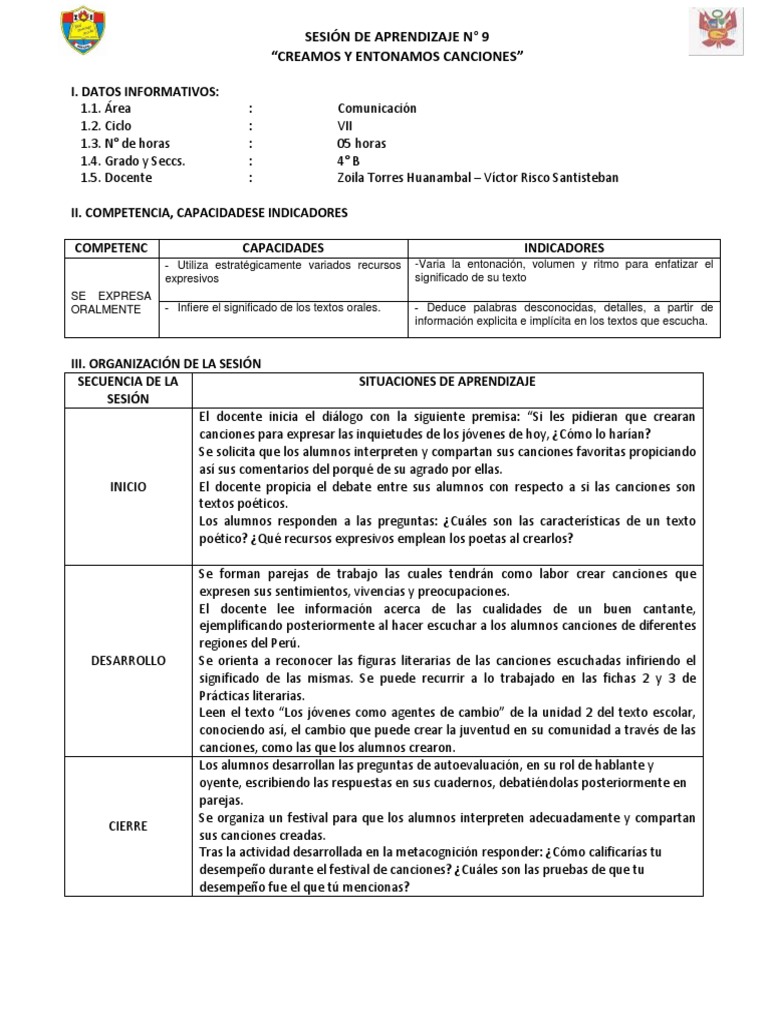 1.5. Docente : Zoila Torres Huanambal – Víctor Risco Santisteban